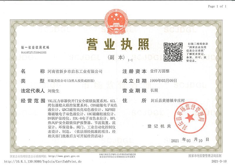 河南省新鄉市啟東工業有限公司始建于1987年,是專注研發(fā)、生產自動化儀器儀表(主要與壓力容器、鍋爐等容器配套使用)的廠家。主要產品有液位計(磁敏雙色型、磁翻柱型等)系列、烤包器熄火聯控裝置系列、壓力容器快開門安全聯鎖保護裝置系列、鍋爐報警器系列。二十多年來,公司產品暢銷國內并遠銷俄羅斯、蒙古與東南亞,深得廣大用戶的信賴和好評。我們多年來致力于自動化儀器儀表的研制生產,公司現具有完善的生產、試驗、檢測手段和設備。科技創(chuàng)新、誠信服務,是我們不變的經營理念,我們將以強有力的技術支持及售后竭誠為客戶提供良好的服務。  2012年我公司成功研發(fā)了KCL系列烤包器熄火聯控裝置,并于2013年2月2日榮獲中華人民共和國國家知識產權局辦法的《實用新型**證書》<**號:2021202257735>該產品廣泛應用于唐鋼等大型鋼鐵企業,為烤包器安全作業提供了有力的保障。  2002年我公司成功研發(fā)磁敏電子雙色液位計獨特的高亮度LED紅綠雙色顯示,獲得了專家的首肯和用戶的一致好評。在此基礎上我公司研發(fā)人員十年磨一劍,致力于XQFB-1防爆型磁敏雙色液位計的研發(fā),于2013年12月27日由國家防爆電器產品質量監(jiān)督檢驗中心檢驗合格并頒發(fā)防爆合格證書<編號:cnex19.0883>。該產品性能得到了充分的發(fā)揮,廣泛應用于含有Ⅱ類A·B級T1-T4組可燃氣體或蒸汽與空氣混合形成的爆炸性混合物的0區、1區危險場所。連接用戶DCS或PLC系統實現遠距離集中顯示和控制,從而實現節(jié)能、數字化管理。為用戶增加了一定的經濟效益和社會效益,。2014年公司成功申請了夢潤儀表的logo,新的品牌新的形象,夢潤儀表是啟東的LOGO, 歡迎新老用戶前來洽談合作。  我們一如既往地注重科研的投入,憑借產品的不斷更新、加大科技含量,進一步拓展市場。我們相信品質成就未來,以過硬質量、優(yōu)惠價格、完善的售后服務熱忱歡迎廣大客戶來我司視察指導、洽談業務;精誠合作,共創(chuàng)輝煌!